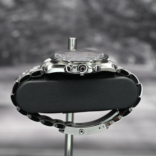 Featuring a 42mm stainless steel case, hesalite crystal, and classic black dial layout, this Speedmaster is the purest expression of the original “Moonwatch” design. Powered by the manual-wind Omega Caliber 1861 movement, it delivers heritage, mechanical beauty, and the pure tactile experience of hand-winding a true mechanical icon.